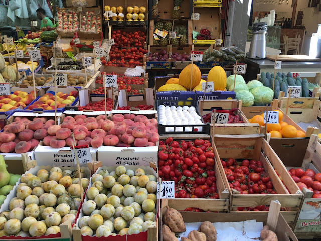 Nos outros dois mercados, a vida corre nas ruas, enquanto os olhos catrapiscam a diversidade do exposto nas bancas. Fruta, como o figo da Índia, muito popular na Sicília,  legumes, peixe, licores e vinhos,