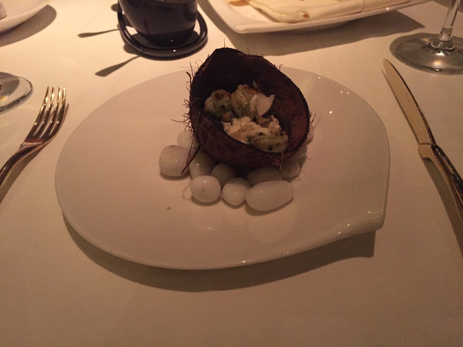 Confortáveis, sentimo-nos prontos para o primeiro andamento, de quatro, o qual é composto por um conjunto de snacks. Serão cinco ao todo.